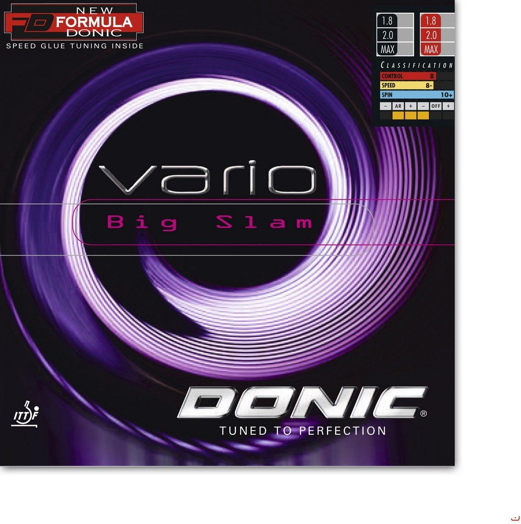 Potah vycházející z kvality a popularity potahů DONIC Vario, které jsou na trhu více jak dvacet let, Měkký potah vyrobený technologií Formula (přelepovací efekt) s důrazem na mimořádnou kontrolu a cit pro míček, Ideální pro milovníky měkkých potahů hrající topspinové údery, Klapavý zvuk při dotyku s míčkem,